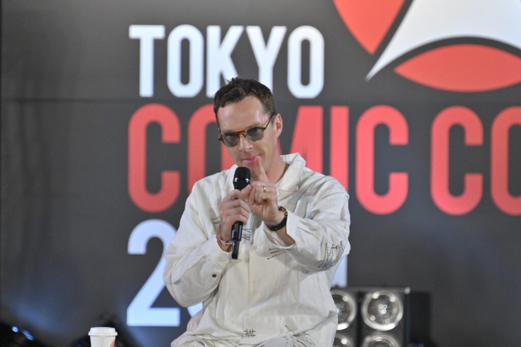 さらに、『アベンジャーズ/エンドゲーム』に関する質問では、人差し指を立てて見せる、ファンにはお馴染みのシーンをリクエストに応えて再現!これには場内のファンも大歓喜!これにカンバーバッチ氏は「これだけでこんなに喜んでもらえるなんて不思議な職業だよね」と話し、ファンの笑いを誘った。