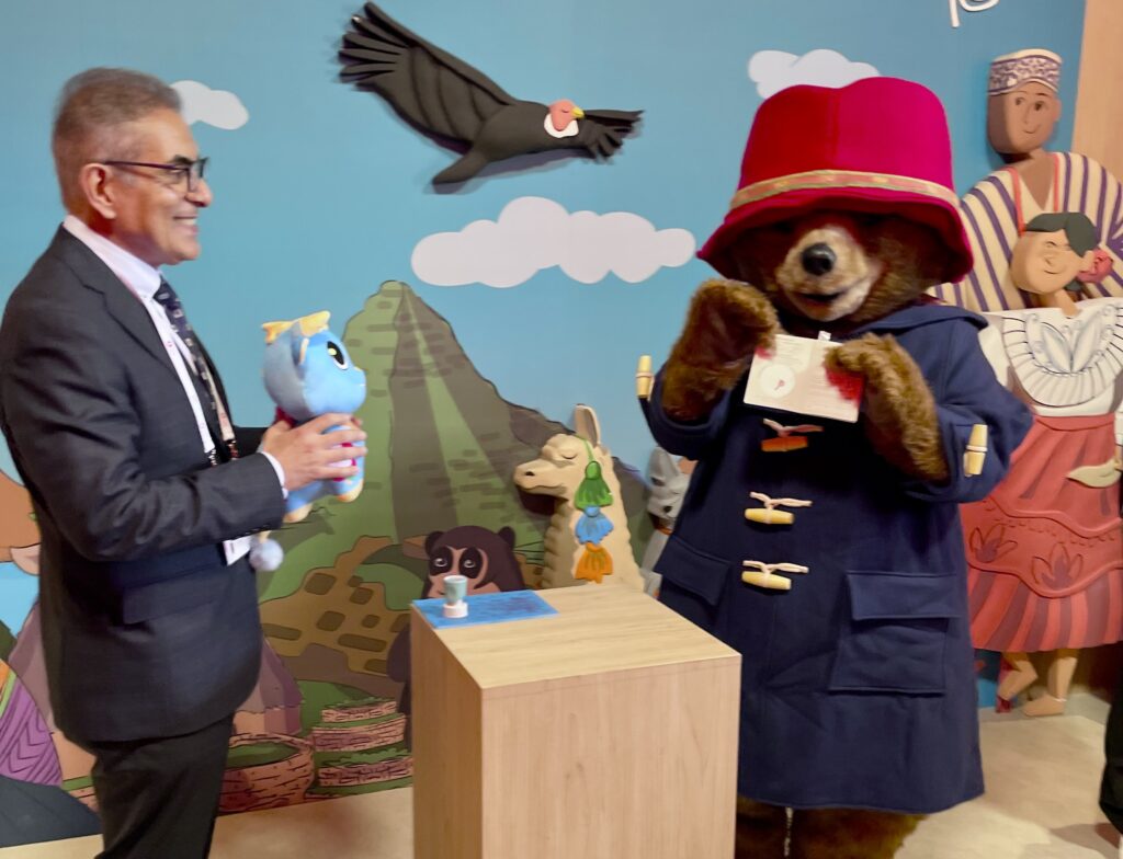 2025年5月1日(木)、五月晴れの中、大阪・関西万博にて、英国で長年愛されているパディントンが、映画さながら英国とペルーの架け橋となった。イベント当日の午前中は、英国パビリオンにて、2025年国際博覧会英国総局 総局長キャロリン・デービッドソン氏によって、翌週に最新作の映画の公開を控え、「亡きエリザベス女王とサンドウィッチを分け合った仲」と紹介されたパディントンが歓迎を受けた。