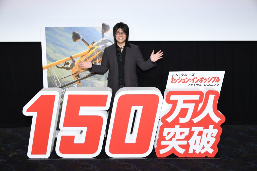 先行上映を含み、公開から 10日間の累計観客動員数が早くも150万人を突破した記念のパネルとともに写真撮影をすることになるが、なんと想定をも上回るハイペースで前日までに179万人を突破していることが発表され、まさかの29万人も上振れする事態に再び会場は大盛り上がり!森川は「日を追うごとにどんどん増えてるんですね!パネル作り、急ぎすぎたんですね?(笑)トムが渾身の力を込めて作った『ミッション:インポッシブル』の集大成、ぜひ何回でも皆さん劇場に足を運んでご覧になってください!」と“追いミッション”オススメのアピールを欠かさず。勢い止まらぬミッション旋風、さらなる大席巻を確信させる盛況のイベントとなった。