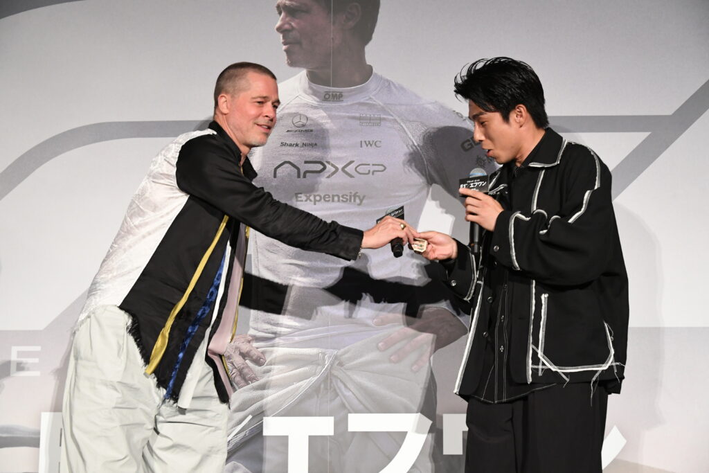そして来日2日目となる26日(木)にはブラッドが、本作でブラッド演じるソニーの日本語吹替を担当した“ブラピ公認声優”堀内賢雄と、またF1(R)ファンとしても知られる中尾明慶と、それぞれ舞台挨拶に登壇。