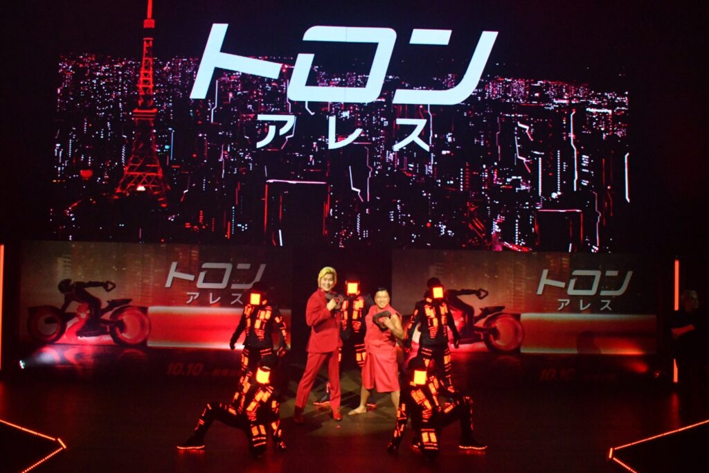 完全に“トロン”の世界一色に染まったふたりは、最後に、「とんでもない映像!大画面で!そして光と音楽を肌で感じながら見ていただきたいと痛烈に感じているぜぇ」(スギちゃん)、「大画面で観たいです!この作品こそ、世界に入らないと勿体ないと思うので。そして、前作とストーリー自体は繋がっていないとはいえ、ヒント的なものがたくさん散らばっているもいると思います。無免許で観てももちろん良いですが、2~3回、4~5回、いや、7~8回観ても良いほしい。最新作を観て、過去作を観て、もう1回最新作を観に行くくらいが絶対良いと思います!」(カズレーザー)と『トロン:アレス』の楽しみ方を改めてアピール。大盛り上がりの中、『トロン:アレス』東京侵食ナイトは幕を閉じた。