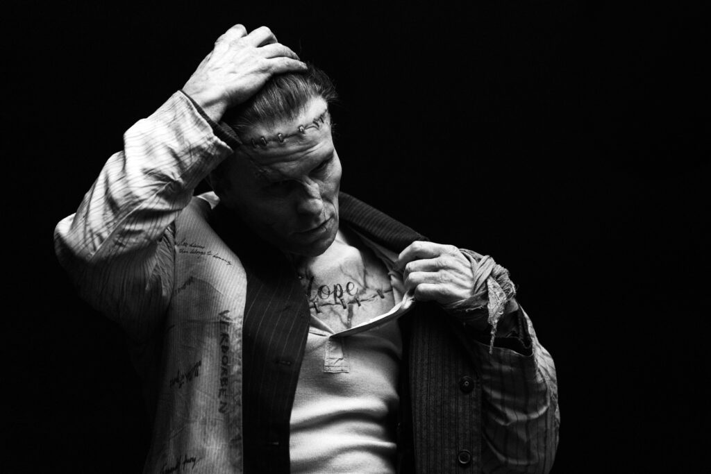 そんなフランケンシュタインのキャラクター造形においては、クリスチャンとマギー監督の間で綿密な意見交換が重ねられ、外見を完成させるまでのリサーチと開発に約1年を要した。最大のテーマとなったのは、怪物性と人間性のバランスだ。クリスチャン自身の身体的特徴を活かしつつ、傷跡や質感を加えることで“継ぎ合わされた存在”であることを表現。人間らしさを失わずに、怪物としての説得力を持たせるアプローチが取られている。