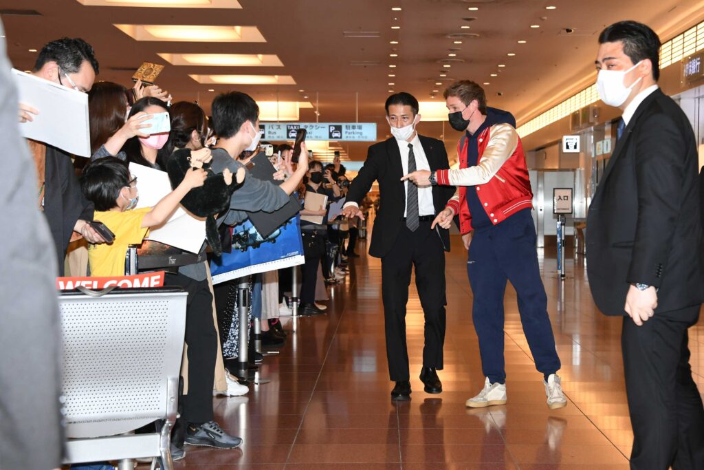 20時40分、赤のアウターというカジュアルな私服に身を包み、羽田空港に降り立ったエディ。ロンドンから15時間超という長時間のフライトにも関わらず、その疲れを感じさせない爽やかな表情で到着ロビーに姿を見せました。
