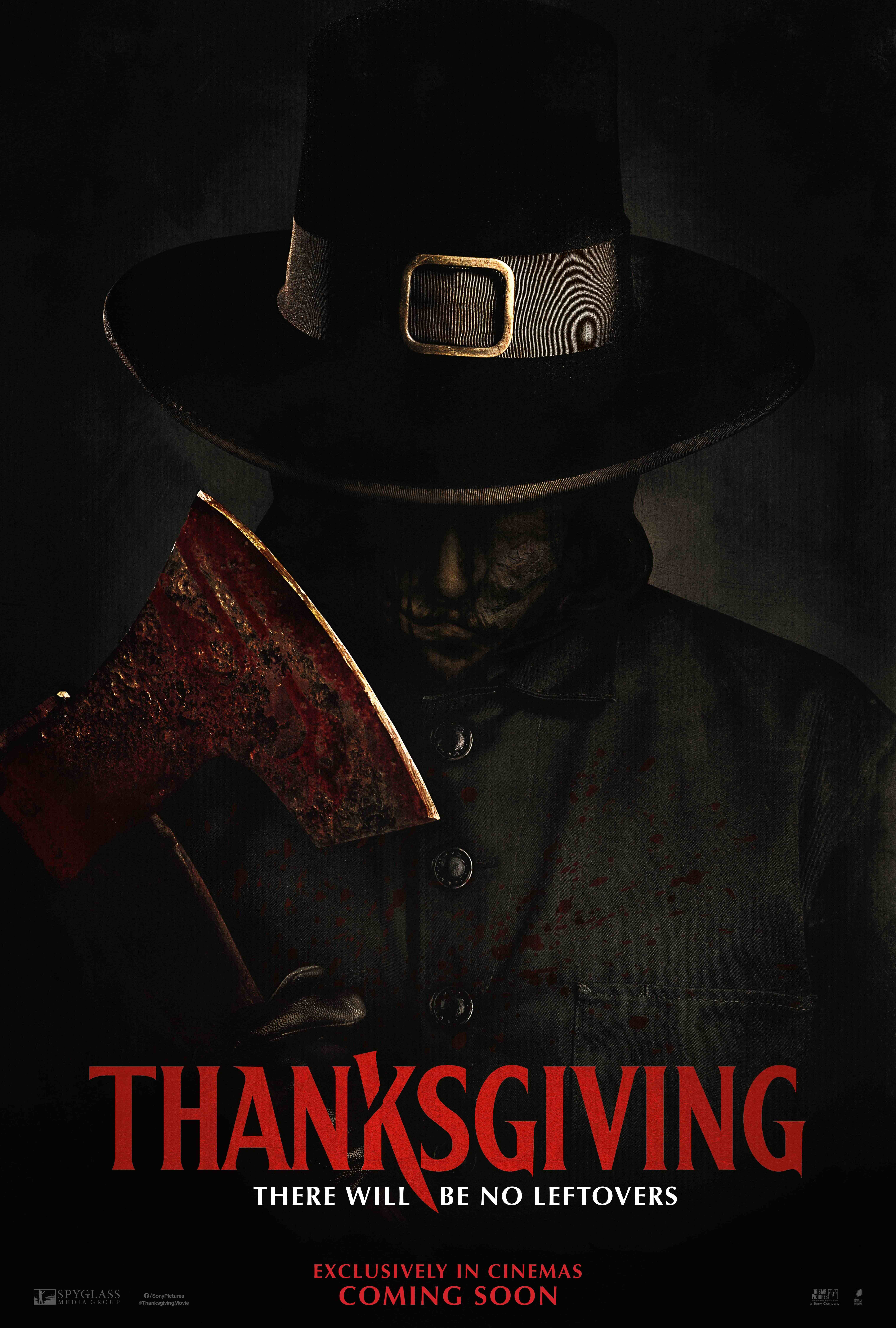 本作の舞台は、「感謝祭(=サンクスギビング)」発祥の地とされるアメリカ・マサチューセッツの田舎町。感謝祭とは、家族や愛する人々と共に日々の収穫や恩恵に感謝し祝福する、一年でもっとも盛大な祝祭のひとつ。今回解禁された予告編は、何者かがご機嫌に料理作りに励むシーンから始まる。ところが調理されているのは食材ではなく、なんと人間…⁉ハッピーなお祭りムードを楽しんでいた人々だったが、突如として現れた謎の連続殺人鬼によって、町は恐怖のどん底へと突き落される。そんな中、地元の高校の仲良しグループのメンバーたちは、自分たちが何者かによってインスタグラムの投稿にタグ付けされたことに気づく。投稿を確認すると、そこには感謝祭のおしゃれな食卓に意味深に配された自分たちの名札が!!!住民たちの不安を煽るように、斧や重機、冷凍庫、業務用オーブン、コーンピックなど多様なアイテムを使いこなし、残虐なやり口で次々と町の人々をなぶり殺していく殺人鬼。果たして、メイフラワー号でアメリカに渡った清教徒<ピルグリム・ファーザーズ>の指導者ジョン・カーヴァーのお面に身を隠したこの人物は何者なのか。次のご馳走<ターゲット>は誰なのか。そしてなぜ彼らは狙われるのか――。饗宴が狂宴と化し、一夜が永遠のトラウマとなる史上最悪の感謝祭<サンクスギビング>が始まる――!