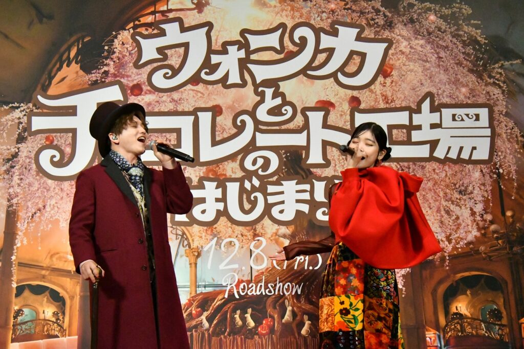 本作へ熱い視線が注がれる中、主人公ウィリー・ウォンカ役、日本レコード大賞受賞の5人組男性アーティスト・Da-iCE のボーカルを務める花村想太と、ウォンカの相棒的存在となる少女・ヌードル役、楽器を持たないパンクバンドBiSHの元メンバーセントチヒロ・チッチの完全吹替版キャストによる、主題歌「ピュア・イマジネーション」初お披露目となる歌唱イベントが都内にて行われた。