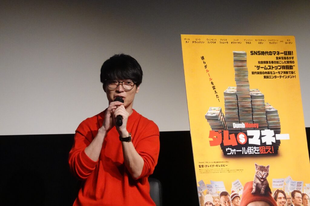 本作は2021年のアメリカで実際に起きた“ゲームストップ株騒動”に基づく実録エンターテインメント。アメリカでは社会現象にもなったこの騒動だが、テスタ氏は「ゲームストップ株騒動は当時ほんとうにびっくりしました。僕は主に日本株の取り引きを行っていて、この騒動はアメリカ株ですので市場は異なりますが、それでもやっぱり大きなニュースになりましたよね」と当時を振り返りながら、「2021年の騒動だと思うと、本当に映画化が早いですよね。旬を逃さないところがすごいと思います。もう映画化されたんだ!とびっくりしました」と率直に語った。