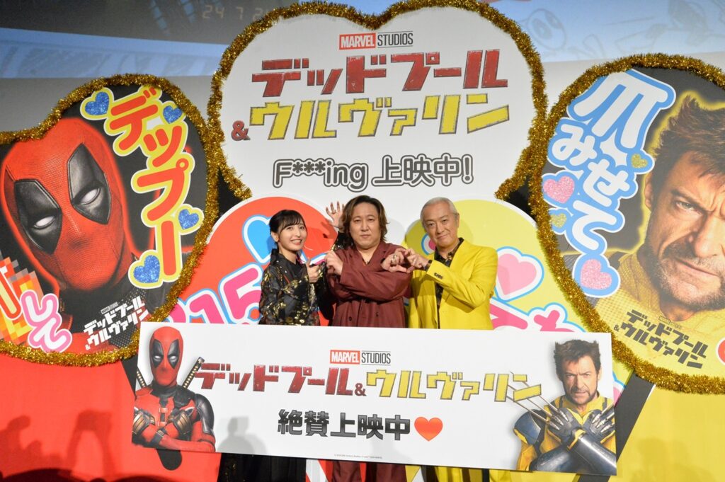 “ガチャ無茶トーク”で盛り上がる中、観客へのメッセージとして、「コンプライアンスが厳しい世の中でここまで発散してくれて、とても気持ちの良い作品です!何もかも本当に目が離せない展開になってます。冒頭のシーンもお気に入りなのでぜひ『デッドプール&ウルヴァリン』の世界に巻き込まれてください!カサンドラのこともよろしくお願いします」(佐倉)「ライアン・レイノルズとヒュー・ジャックマンの仲が良くて、じわじわと楽しくなる感じが好きでした。ふざけたセリフも多い作品なのに、ウルヴァリンを演じたヒュー・ジャックマンの真面目な芝居にびっくりして震えました。実は昨日見て泣いてしまって。そんな自分に驚きつつ映画のすごさに感動しました。ぜひ楽しんでください」(山路)「『デッドプール』はラブストーリー、『デッドプール2』はファミリー映画で、『デッドプール&ウルヴァリン』はヒーローとは?がテーマになっている作品です。頭からおしりまで全力疾走しています。山路さんとの仲の良さで乗り越えました。気楽な気持ちで楽しんでください」(加瀬)と作品への愛情溢れる挨拶で、観客の期待値を高め、アツいイベントの幕が閉じた。